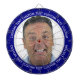 Custom Photo Dartboard template with personalized text and NAVY BLUE 000080 round photo framing surround (other color surrounds available in store). Your face on a dartboard. One click personalize upper and lower text plus replace image, or full customization via Edit Screen. Regulation size with metal frame and 6 brass darts (Stars and Stripes + Union Jack flights). A fun gift for a darts player.