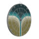 Ilustração geométrica do padrão de arcos duplos com estilo retrorativo com riscas beige, verde, azul, azul marinho e turquesa