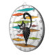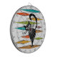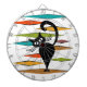 Ilustração colorida do estilo de Meio século abstrato com gato preto e decoração colorida de rombos em fundo branco