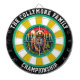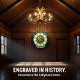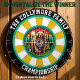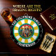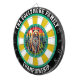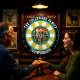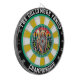 Um trabalho de arte circular ousado de um urso pardo na floresta, acentuado por um alvo.