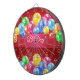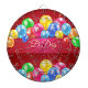 “Divirta-se com o Alvo de Dardos de Aniversário Dia de Aniversário! Uma mistura colorida de balões, confetes e escrita dourada traz energia de celebração a cada lançamento.”