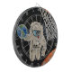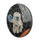 Pintura original de um astronauta jogando bola com a terra. Criado por meio de latas de plástico e tinta acrílica.