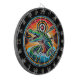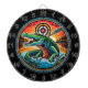 Design circular detalhada de um crocodilo num lago com um alvo ousado e centrado.