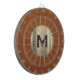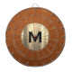 Conselho moderno de dardo com um medalhão de monograma metálico escovado com tipografia clássica de blocos, inicial num fundo marrom estável de couro aflita. Personalizar com o monograma inicial; use o menu personalizar para alterar a cor ou a tipografia de fundo.