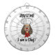 Cabeça de chef com chapéu, corcunda vermelha e texto personalizado.