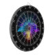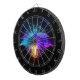 Voz mecânica, antiga, com lâmpada e asas finas brilha cor de laranja, roxo, turquesa sobre fundo preto. Estilo Steampunk.