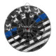 Fundo de madeira falsa com monograma e nome familiar no centro do conselho. Textura falsa de madeira com estrelas e design de fundo de linha azul.