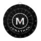 Conselho preto moderno com tipografia de blocos clássicos inicial e nome em branco. Personalize com nome e inicial.