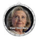 O design apresenta Hillary Clinton. Ela é muitas vezes um alvo principal e se você a ama ou a odeia isso será uma conversa interessante. Você pode substituir a foto e o texto.