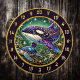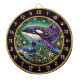 Transforme a sua caverna-homem ou uma cabana de pesca em um refúgio de elegância rústica com esta orca e uma tartaruga arte na parede. O ponto focal desta peça é uma orca majestosa, seu corpo intricadamente detalhado com padrões roxos, dourados e azuis que imitam a beleza do vidro manchado. Nadar ao lado é uma tartaruga serena, complementando perfeitamente o tema aquático. O design é delimitado por um quadro circular com espirais de ouros ornamentados, pedras vibrantes e sotaques celestes. Essa combinação de elementos naturais e detalhes inspirados na fantasia faz dele um complemento evidente a qualquer espaço recreativo. Perfeito para entusiastas do exterior ou fãs da vida marinha, este trabalho de arte funciona maravilhosamente como um prato de arte ou como uma tela única de parede. Suas cores vibrantes e intrincado artesanato garantem que ele desenhar a atenção e a admiração dos visitantes. Traga um toque do oceano e um talento criativo para a sala de jogos, para o alojamento, ou para a caverna humana com esta notável orca e decoração de tartarugas.