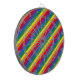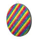 Este trabalho de arte apresenta listras arco-íris num padrão colorido e divertido.