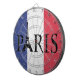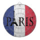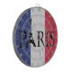 Ilustração de design de texto de Paris com decoração em Torre Eiffel sobre fundo de bandeira francesa de moagem