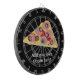 Adicione um slogan ou nome para criar um presente personalizado com um tema de pizza. A imagem mostra um triângulo de pizza com queijo, pepperoni e azeitonas pretas fatiadas.
