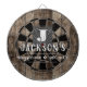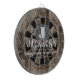 Faux wooden background with monogram and family name in center of the board. Other colors available in the shop. This fun template lets you create your own personalized man cave "your name" whiskey or bbq backyard bar dart board sign. Unique fun gift