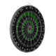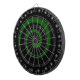Design espiral selvagem cobrir este regulamento dart conselho junto com uma borda estrelada. Espiral negra sobre um verde escuro