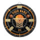 Uma bola de basquete divertida inspirou o prato! Perfeito para o fanático por basquete ou esporte da família e totalmente personalizável para adicionar nomes, imagens e muito mais, se desejar. Possui basquetebol ousado e rede central ao redor dos motivos e círculos do campo de basquete, que lembram uma rede de basquete. Nome e texto numérico totalmente personalizáveis para torná-lo seu. Aproveite!