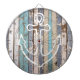 Painéis de praia em um fundo de madeira rústico com design de âncora náutica branca para sua sala de jogos de casa de praia.