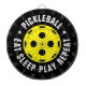 Presente legal de conselho de dardo Pickleball para fã e jogador. Decoração do muro de tendências para bares desportivos, quarto, escritório, casa de clube, tribunal, etc. Design de logotipo de bola amarela.