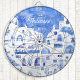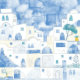Pintura de cor aquosa, azul e branca, baseada em Oia, na ilha grega de Santorini. Alterar ou remover o nome a personalizar.