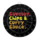 Tabla Dardos Saveloy, Chips e Molho Curry.