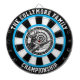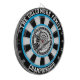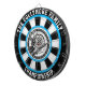 Arte circular com veado com galhadas em uma floresta pacífica, acentuada por um alvo.