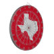 Forma do mapa branco do estado do Texas contra vermelho vivo. Há outro tom de vermelho ou outras cores para o seu fundo. Adicione texto personalizado para criar seu próprio conselho dardo. Você também pode mudar a cor da forma do mapa branco do Texas.