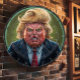 Imagem do Conselho Dart Donald Trump. Um prato redondo com caricatura de Donald Trump. A imagem é uma tomada humorística da política, adequada para adultos e para quem se ri bem. Um caricatura humorística com Donald Trump. O conselho é projetado com fundo verde e preto e apresenta um layout tradicional de prancheta. É uma maneira única e divertida de adicionar algum talento político à sua sala de jogos.
