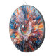 Uma representação vibrante e surreal foca-se num olho muito detalhado cercado por uma explosão de elementos abstrato e coloridos. A composição apresenta uma mistura de penas, formas orgânicas e rajadas de cor que irradiam para fora, criando uma cena dinâmica e cativante. Digital Art Photoshop CS5
