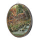 Cozinha branca e rocha caminhando pela floresta ao longo de um riacho cascata de rochas e cachoeiras. Trabalho de arte realista criada de uma pintura original de óleo por vida selvagem e artista equino Crista S. Forest.
