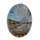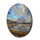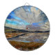 Uma design de arte de um lago com o dramático céu refletido na água do lago. Colinas e campos circundam o lago.
