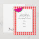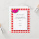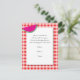 Este convite do divertimento tem um fundo checkered vermelho e branco do tablecloth que lembre de verões antiquados. No canto de superior esquerdo há uma fatia de melancia. Seu texto customizável é centrado em um centro branco. Este é um convite ideal para um piquenique, reunião de família, churrasco, evento do Memorial Day, ou para terminar a temporada de verão no Dia do Trabalhador.