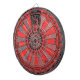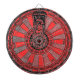 Mesa redonda do rei Arthur com uma flor cor-de-rosa central.