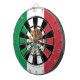 Um dartboard impressionante para o amante de dartboards legal e da cultura mexicana. Caracteriza uma versão artística da bandeira mexicana indicada proeminente com as silhuetas originais do entalhe do dardo. Perfeito como uma exposição original da arte ou para jogos originais. Inteiramente customizável para adicionar nomes, imagens, e mais ou comprar como é. Aprecie!