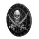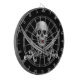 Crânio cromo e espadas cruzadas. Pelo pirata discriminador. Por favor, note que esta é uma imagem, não um metal real.