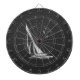 Um cromo prateado como cena de um veleiro regata num decor de fundo de fibra de carbono preta. Um presente náutico moderno.