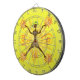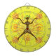 Design primitivo africano com dançarina e decoração em forma de sol sobre fundo amarelo