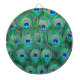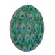 Array de penas de pavão impressionantes em tons de lacaio, azul, verde, aqua.