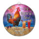 A galinha neste design cómico sabe que quando é - é hora de beber, naturalmente, porque é tempo do cocktail! Esta arte tropical parva é perfeita para qualquer um que ama o mar e as galinhas e os margaritas e o paraíso e o verão infinito. Mostra um galo que cantam com as bebidas coloridas de um casal e um par de óculos de sol. O galo está na areia ao lado do oceano e de um por do sol vibrante. No fundo, as frondas da palma e as fatias vívidas da fruta flutuam opaca no céu com um olhar sonhador, porque claramente este galo teve um pouco demasiado a beber. Este design do divertimento é perfeito para uma casa de praia, uma casa de campo do verão, um bar tropical do tiki - ou a capoeira de galinha. Use os campos do modelo para adicionar seu texto personalizado.