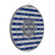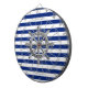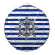 Um cromo prateado como design de roda em uma decoração de listras azuis marinho. Um presente náutico moderno. Use o link "Perguntar a este Designer" para entrar em contato conosco com suas solicitações especiais de design ou para obter assistência com qualquer das suas necessidades de personalização.