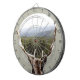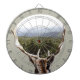 Uma pintura digital da cabeça de um galo com vista a colinas recheadas de árvores entre os seus galhos. Esta imagem não tem fundo, você pode escolher uma cor de fundo diferente da selecionada.