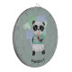 Um conselho personalizado de dardo com um panda de hipster comendo um cone de sorvete. Edite o nome de exemplo mostrado com o nome desejado ou outro texto.