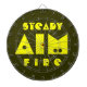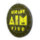 Quadro de dardos engraçados para dardos de pub na caverna de homens. Camuflagem de tons de marrom claro com verde-claro de azeitona para as palavras. Um fundo verde-oliva mais escuro. FIQUE COM O AIM FIRE em texto enorme com buracos nas letras. Você pode mudar as cores do texto ou do fundo, mas essas cores vão pegar seu olho. De Wolf Medicine