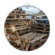 Uma fotografia de páletes de madeira empilhou a elevação em uma parede do porto na cidade costeira de Whitby, Inglaterra do leste norte