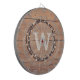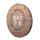 Design de monograma para Natal, com coroa e decoração de neve sobre fundo de madeira rústica