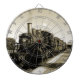 Uma fotografia sépia de uma locomotiva a vapor histórica enquanto ela sai do passado; um belo presente para qualquer aficionado do trem.