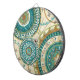 © Veronique Charron/Apple selvagem. Esta imagem de padrões circulares caracteriza cores do azul e do ouro. A imagem tem um tan colorido, fundo modelado floral.