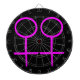 Este incrível dartboard é projetado para lésbicas. Ele apresenta dois símbolos femininos cor-de-rosa, lado a lado. O fundo é preto.