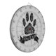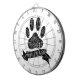 Impressão de pata de cachorro angustiada com fita preta. Melhor amigo do homem. Imagem em preto e branco.
