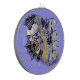 O crânio de tronco com mohawk e guitarra é desenhado em tons coloridos de azul e roxo. Este é um design excelente para o roqueiro que está dentro de crânios!