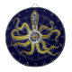Este monstro de mar tentacled do steampunk tem oito fio-como anexos do ouro, uma engrenagem de prata central e a abundância das engrenagens e dos parafusos que compo seus cabeça, olhos e copos da sucção. É um polvo do robô/kraken, um monstro da máquina do metal para qualquer um que gosta de criaturas geeky da ficção científica/fantasia. A cor azul escuro do fundo é customizável.